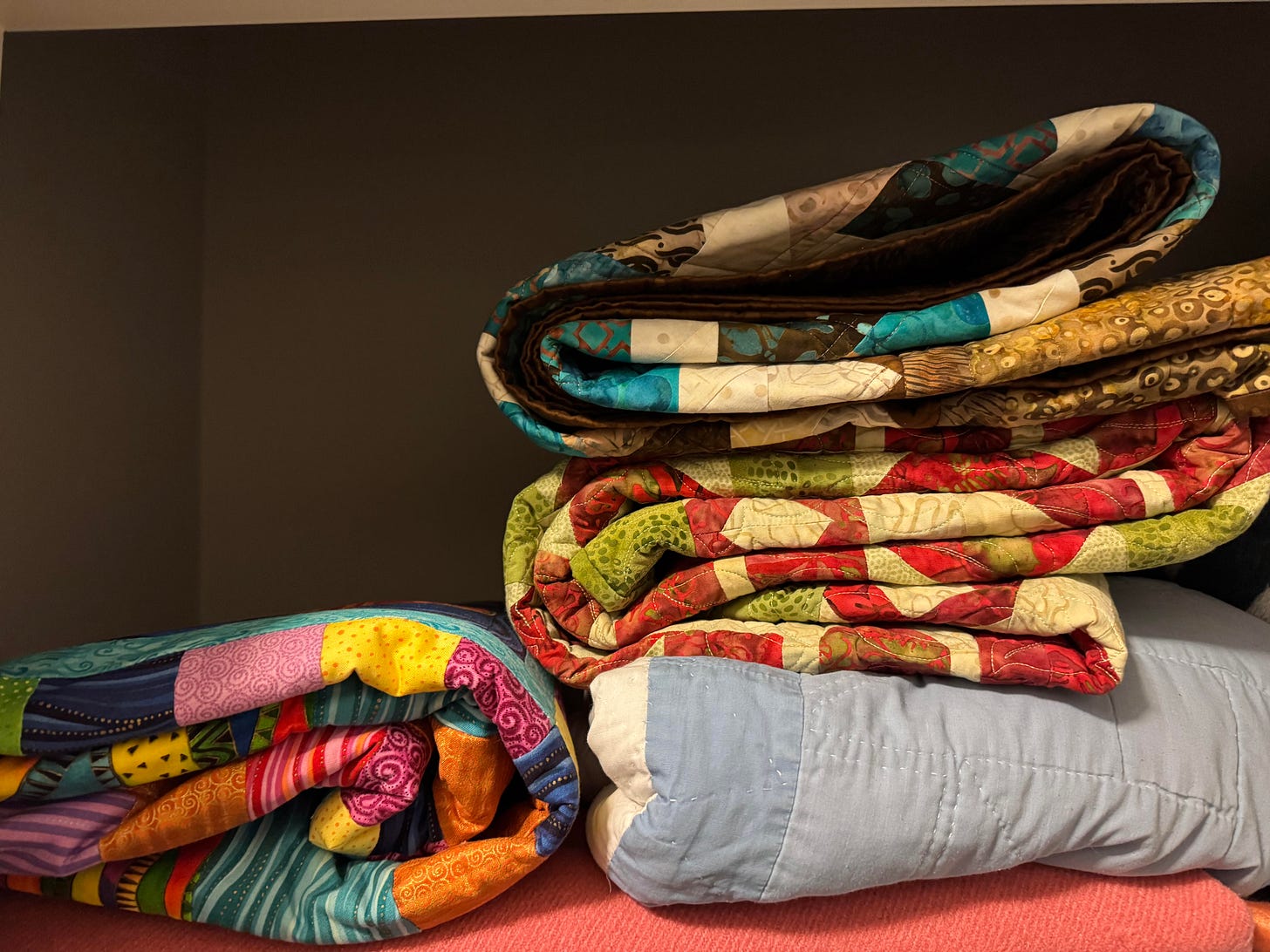 A Folded Blanket - I have a whole shelf in my linen closet filled with folded quilts - made by me, my sister, and my mom. Sometimes I hang one on the wall for a time. The truth is, my home doesn’t have a lot of wall space. So mostly they sit quietly in the closet - resting in stillness, waiting for their turn again.